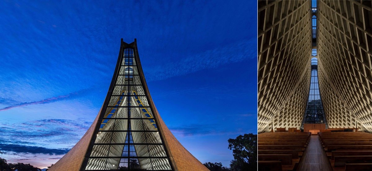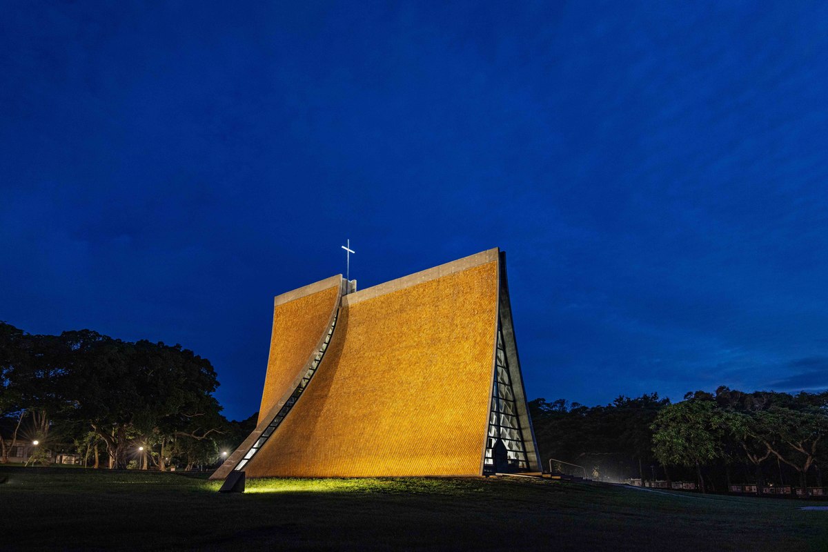 由臺灣建築師陳其寬與美籍華裔建築師貝聿銘設計的「路思義教堂」,落成於1963年,是台灣現代建築經典之作。設計團隊藉修復工程,引入現代化燈具與光環境整合;精準運用人工光,營造宛若自然天光細膩襯托曲面稜線,夜幕降臨,以暖調微光勾勒結構輪廓,使路思義教堂無論在白晝與夜間,皆能展現其神聖與詩意的空間精神。