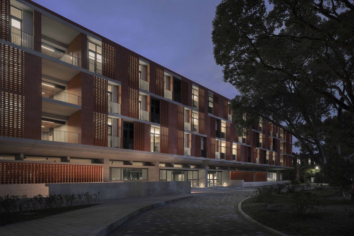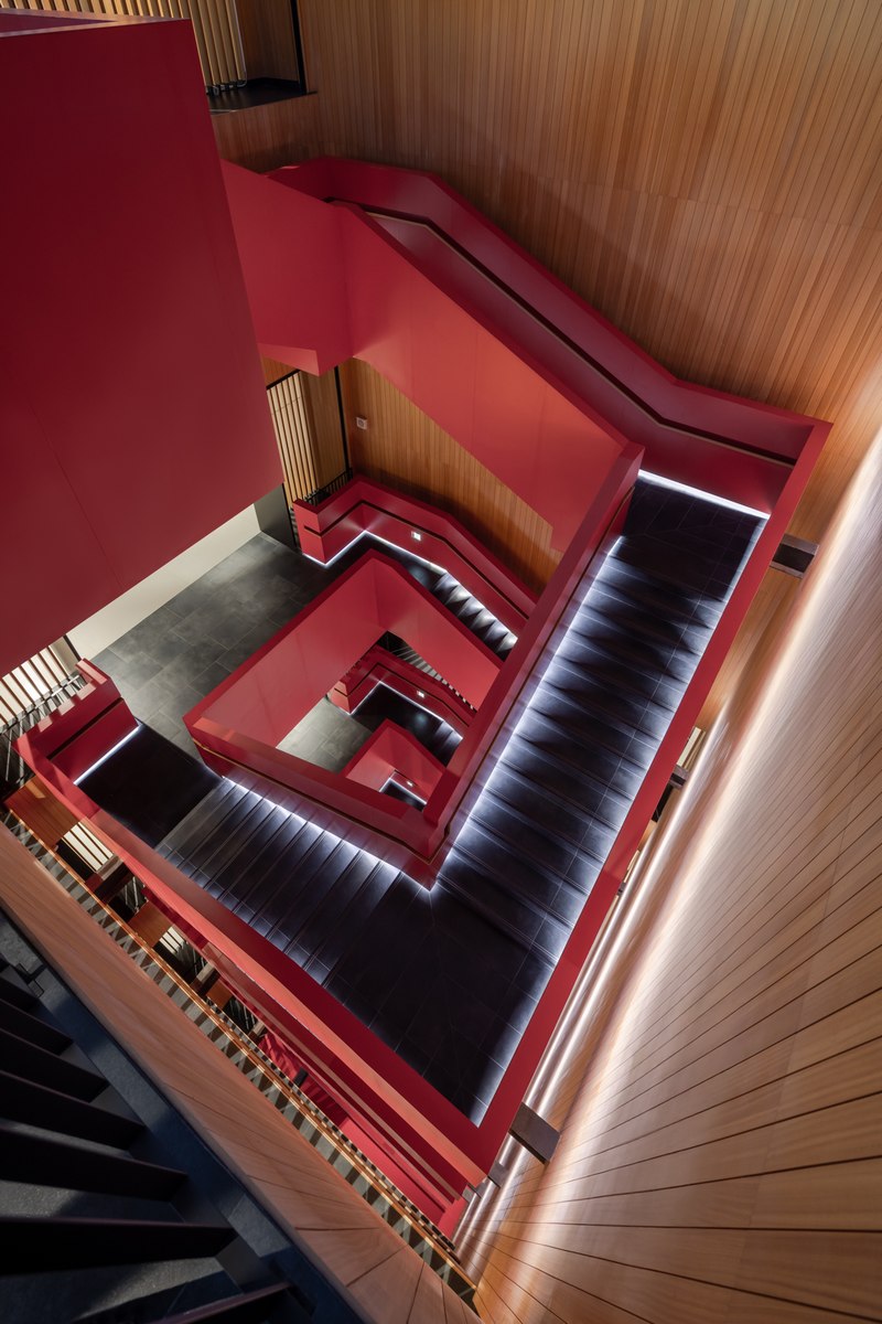 耗時17年完工的「臺灣大學人文館」,建築設計以四合院形式致意農陳館,並透過大階梯、廣場、地下天井、垂直樓梯、空橋與廊道,構築出水平與垂直交織的立體空間。夜晚時,照明設計成為引導空間體驗的關鍵;對外,藉由燈光氛圍融入校園的古蹟群;對內,則利用光線串聯樓梯、空橋與廊道,營造溫潤宜人的光環境,引導使用者感受人文館特有的空間溫度。透過光影的流動,延續建築的語彙,並在空間中創造出可供駐足、沉思的角落,讓光成為連結人與空間的詩意橋梁。