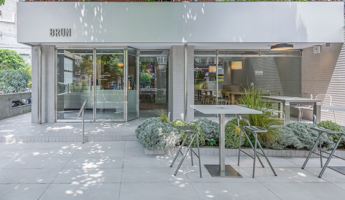 「BRUN TIANMU」座落於天母商圈,空間設計以「LET’S BRUN TOGETHER」為主軸,打造出具悠緩、趣味靈活的空間氣息。燈光設計上,選用3000K暖黃光,傳遞溫暖、親切感受;更導入與西班牙燈具品牌Marset合作,使用多款同系列吊燈、壁燈、吸頂燈取代嵌燈作為主光源。輕透柔軟的玻璃與布幔燈罩讓光線渲染冷冽材質,賦予各區不同情境與氣質;餐桌上桌燈使菜餚鮮明立體,避免拍照時形成陰影;戶外區融合街道語彙設計專屬金屬景觀燈,創造夜晚鬆弛氛圍。各式燈具與設計脈絡相輔相成,為空間增添詩意與層次。