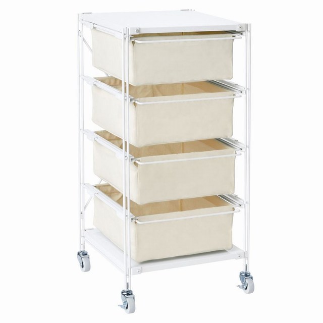 ▲SUS帆布籃推車:搭配帆布籃抽屜的推車。層板為亮面淺灰。附有輪子可方便移動,靈活性高。(圖片提供/MUJI無印良品)