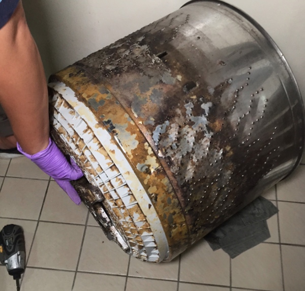 ▲圖為洗衣機內桶清潔前的樣子,拆開後才發現裡面堆積了許多無法自行清潔的汙垢。(圖片提供/HoHo好服務、好生活)