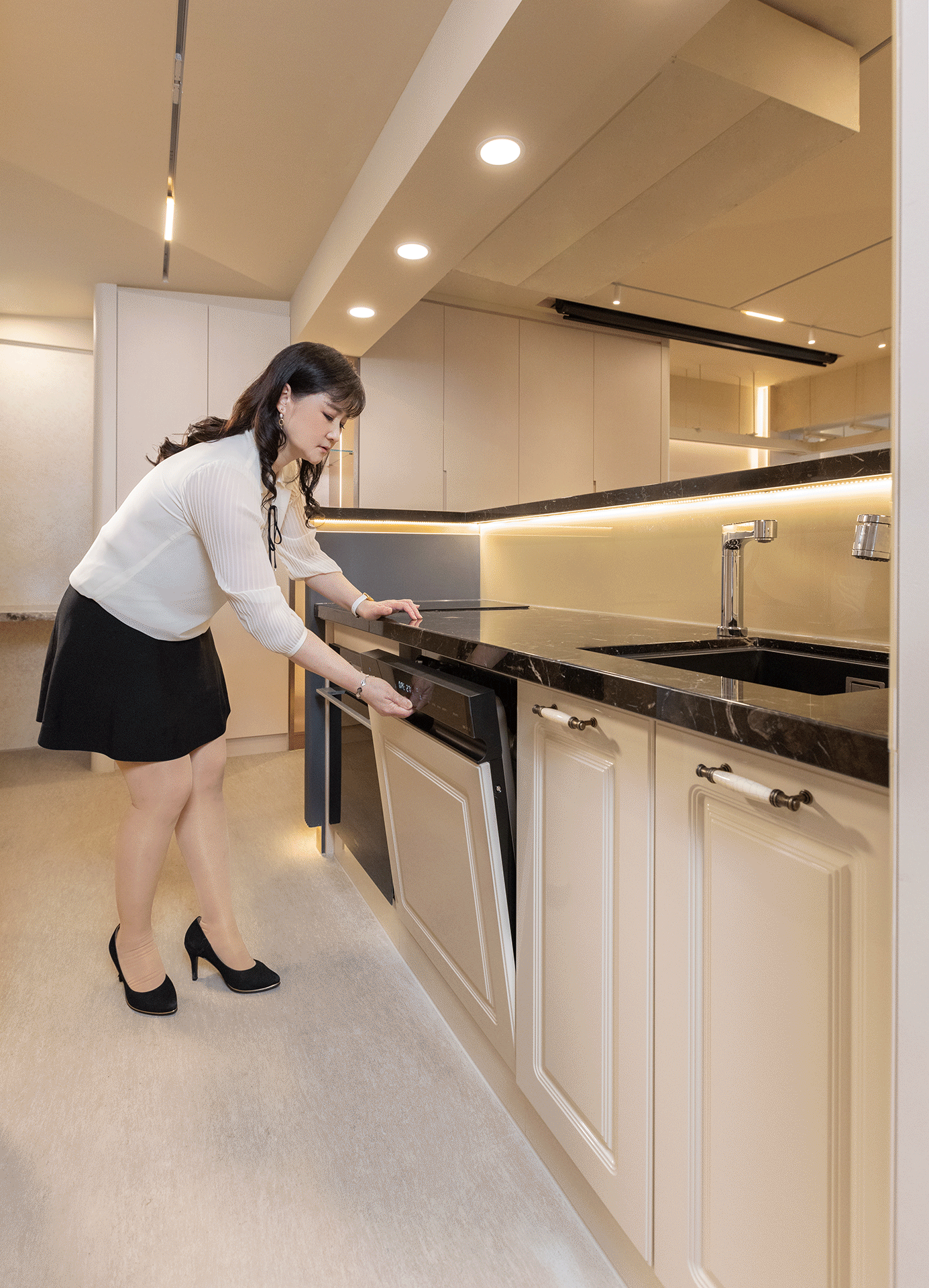 「高端人士多半工作忙碌,社交生活豐富,且注重效率,需保留更多時間享受生活。」基於這樣的洞察,郁琇琇設計總監在選擇廚電時,傾向選擇省時高效、易於清潔、操作簡便、外型美觀、功能多元、售後服務佳的商品。