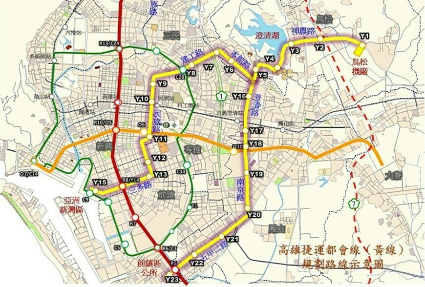 前鎮至鳥松段:涵蓋G05前鎮高中站、G09衛武營站、G12鳥松站等。通車後,從鳥松至亞洲新灣區僅需25分鐘。